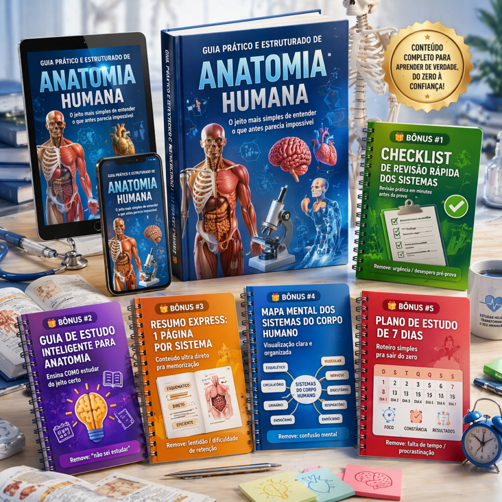 Um passo a passo simples mostrando exatamente como estudar anatomia da forma certa — sem perder tempo e sem ficar travado.